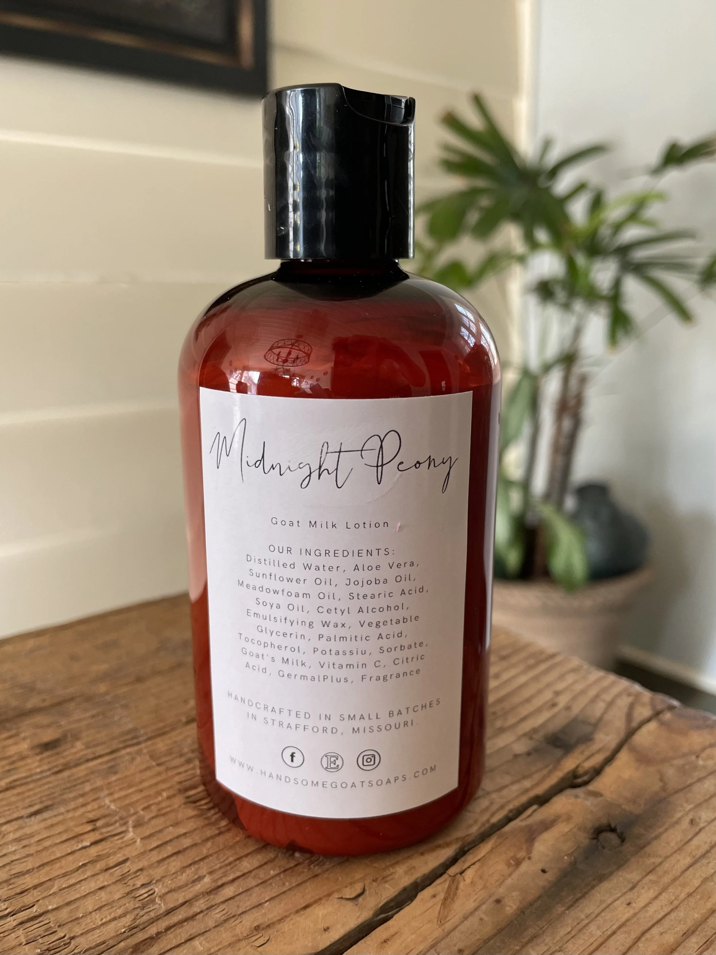 The Midnight Peony Goat Milk Lotion is made with moisturizing ingredients that won’t leave your skin greasy or oily.